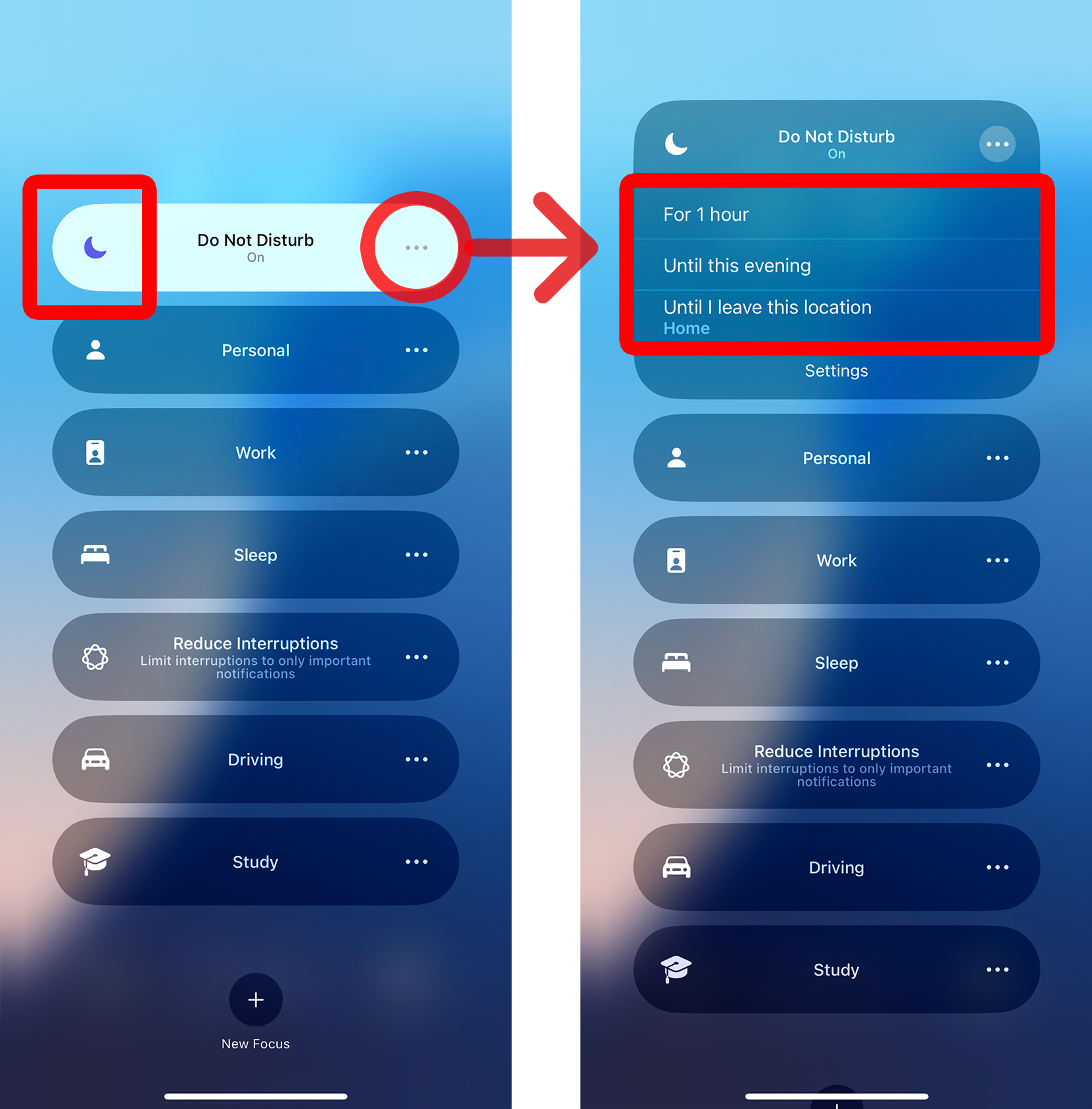 - Add Schedule: Automatically turn on Do Not Disturb based on the time, your location, or which apps you are using.
